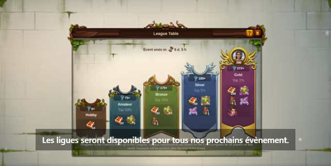 cet événement inclut un classement qui vous permet de récolter des récompenses additionnelles. Tout ce que vous avez à faire est de progresser dans l'événement pour aller le plus loin possible. votre progression est déterminée par le nombre de points de ligue que vous recevez, allant de 1 à 3 points attribués chaque fois que vous choisissez une balise.