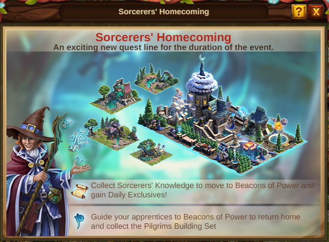 Chers humains et elfes, L'événement de juin de cette année - Les retrouvailles des sorciers - vous propose une nouvelle histoire à découvrir alors que vous essayez de ramener vos pèlerins nouvellement nommés dans votre ville.